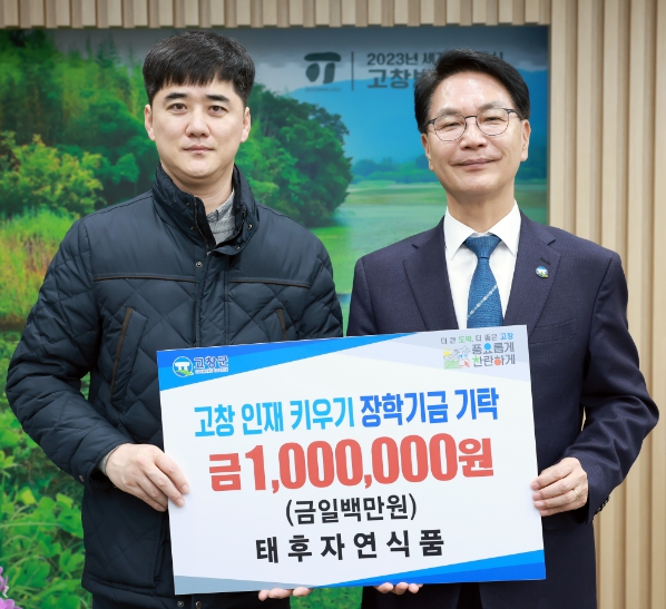 [뉴스서울] 고창군 소재 태후자연식품(영) 임정훈 대표가 고창 농식품산업 미래인재 육성을 위한 장학금 100만원을 기탁했다’고 13일 밝혔다.