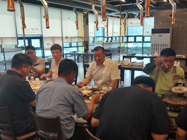 [뉴스서울] 최원철 공주시장이 중복을 앞둔 24일 무더위 속 일선 현장에서 새벽부터 묵묵히 근무하고 있는 환경미화 종사자들의 노고를 격려하고 애로사항을 청취하기 위한 오찬 간담회 자리를 가졌다.