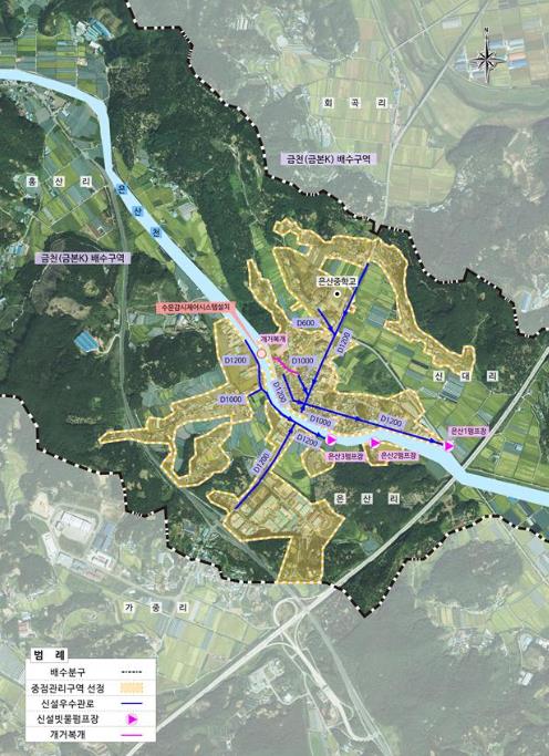 ▲ 은산면 하수도정비 계획평면도 |