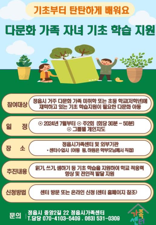 [뉴스서울] 정읍시 가족센터가 7월부터 다문화가족 아동의 학교 적응을 돕고자 기초학습을 지원한다.