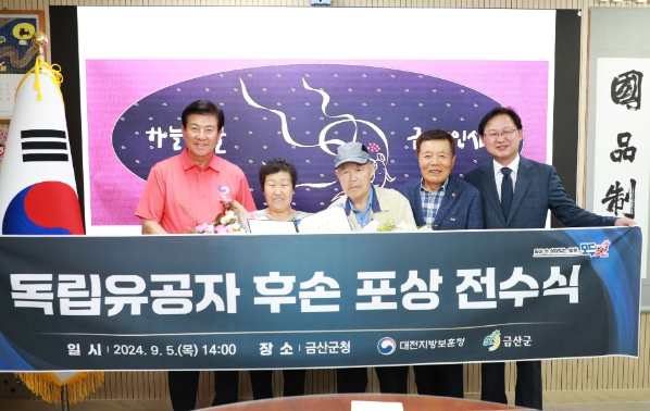 [뉴스서울] 금산군은 지난 9월 5일 국가보훈부 대전지방보훈청과 함께 금산군청에서 독립유공자 고 원인성 지사의 손자 원동수 씨에게 대통령 표창을 전수했다.
