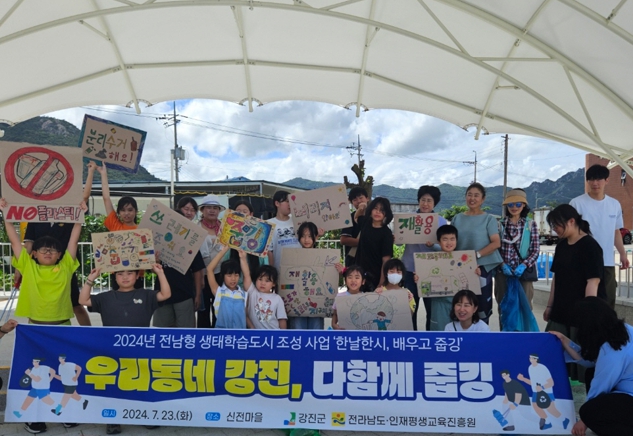 [뉴스서울] 강진군은 지난 23일, 신전면 아동센터에서 ‘찾아가는 생태환경 양성 과정’ 수료자와 신전면 아동센터 어린이 23명이 참가한 가운데, ‘우리 동네 강진, 다함께 줍깅 캠페인’을 추진했다.