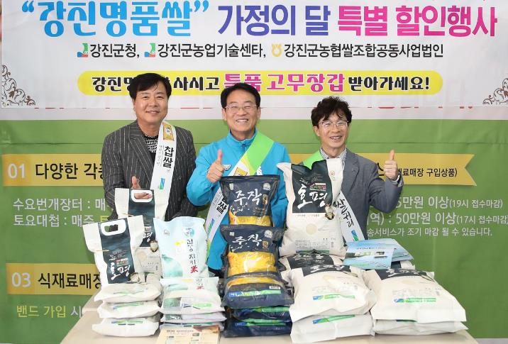 어려운 여건 속에서도 강진군은 강진쌀 판매를 위해 3억8,200만원의 예산을 투입헤 포장재 제작, 평생고객 택배비, 제주도 물류비 지원 등 쌀 판매 활성화를 위해 지원을 아끼지 않고 있다.
