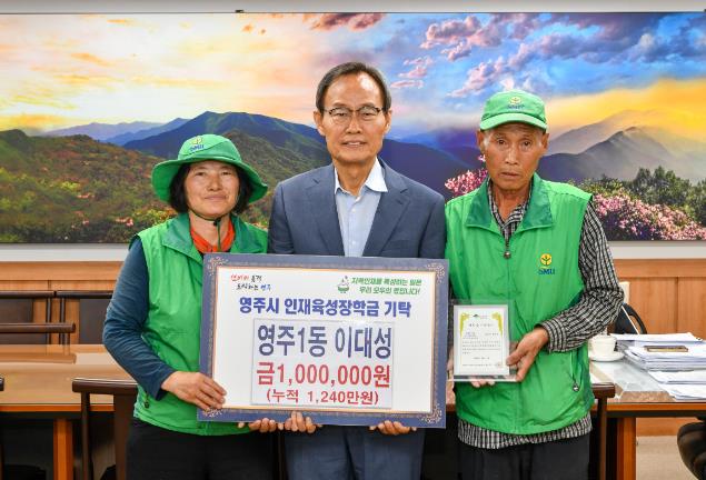 이대성·황영숙 씨는 “작은 정성이지만 어려운 학생들이 공부하는 데 조금이나마 도움이 되고 싶어 장학금을 기탁하고 있다”며 “폐지 수거에 많은 도움으로 줘 장학금 기탁을 가능하게 해준 영주1동 주민분들께 감사하다”고 기탁 소감을 밝혔다.