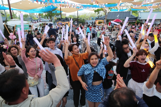 ▲ 지난 4월 19일에 개장한 시즌2 강진 불금불파 행사장에서 관광객들이 EDM DJ공연을 즐기고 있다. |