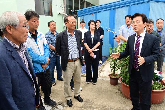 이날 현장 방문지는 노후 저층 주거 밀집지역으로 형성된 사업지구 동편의 서봉지 공원 아래 지역으로, 지역민들이 해방촌이라고 부르는 곳이며 노후 주택이 20여 채 남아 있다.