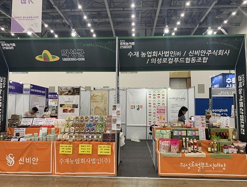 의성군은 의성 햅쌀로 만든 수제 누룽지 업체인 수재농업회사법인, 마늘가공품 업체인 신비안주식회사, 의성지역 농특산물을 판매하는 의성로컬푸드협동조합 3개 업체 외에도 경북 청년 기업을 소개하는 탐나는 기업관에 촌놈농산, 단독기업부스에 웰빙바이오가 참가해 제품을 전시 홍보하였다.