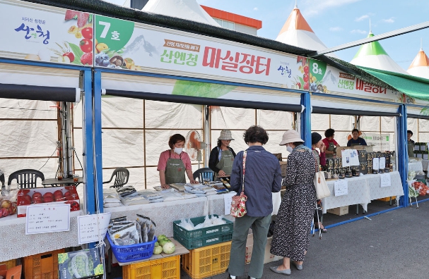 행사는 산청군 로컬푸드 행복장터(대전-통영간 고속도로 휴게소 상·하행선)와 산엔청 마실장터(단성IC입구 농협 APC앞)에서 이뤄진다.