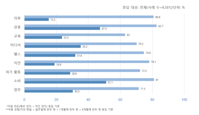 이는 지능정보 서비스가 우리 일상의 다양한 분야에서 활용되고 있고, 특히 지능정보 기술을 통한 의료 서비스 혁신에 대한 이용자들의 기대가 높기 때문인 것으로 풀이된다.