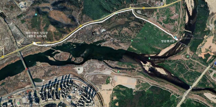 ▲ (미호강 방류지점) 세종특별자치시 세종동 24-109 미호강 합류부 일원 |