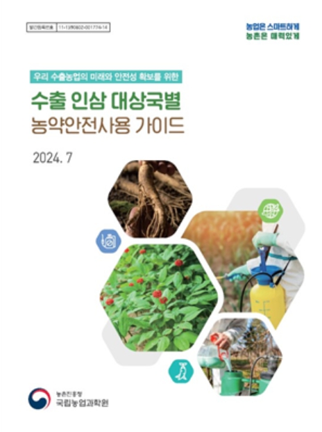 [뉴스서울] 농촌진흥청은 수출용 인삼을 생산하는 농업인이 안전하게 농약을 사용할 수 있도록 ‘수출 인삼 대상국별 농약안전사용 가이드’ 개정판을 발간했다.
