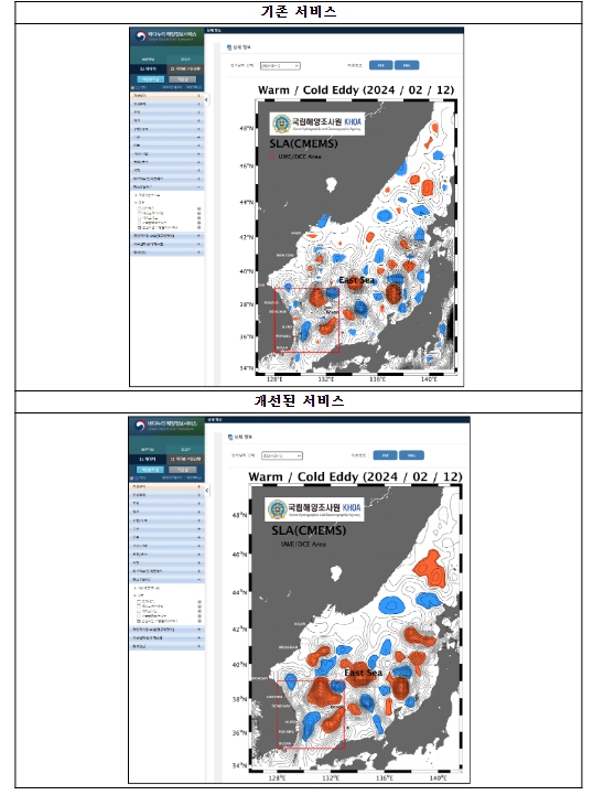 ▲ 준실시간 소용돌이 서비스 제공(바다누리 해양정보서비스) |