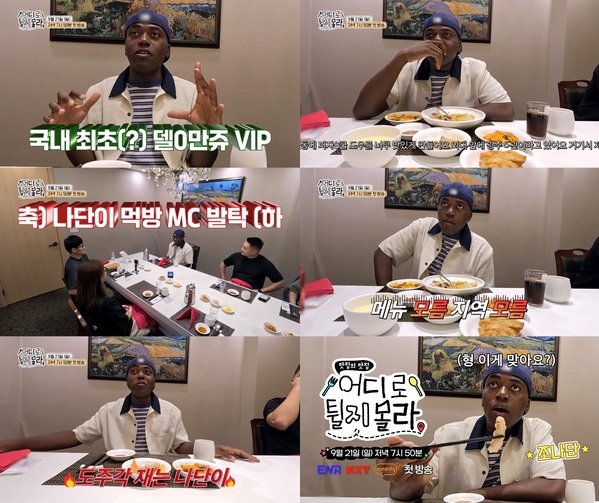 [뉴스서울] 신규 예능 ‘어디로 튈지 몰라’가 9월 21일(일) 첫 방송을 확정한 가운데 첫 먹방 MC에 출격하는 조나단의 티저 예고를 공개한다.