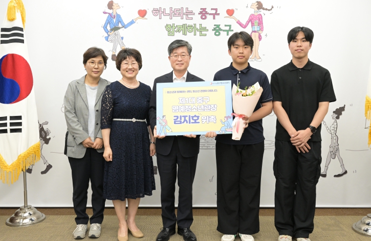 [뉴스서울] 중구의 청소년을 대표하는 새로운 얼굴이 등장했다. 서울 중구가 지난 8일 구청장실에서 중구청소년센터 명예 청소년관장 위촉식을 열고 김지호(16세, 장충고) 제1대 명예 청소년관장에게 위촉장을 수여했다.