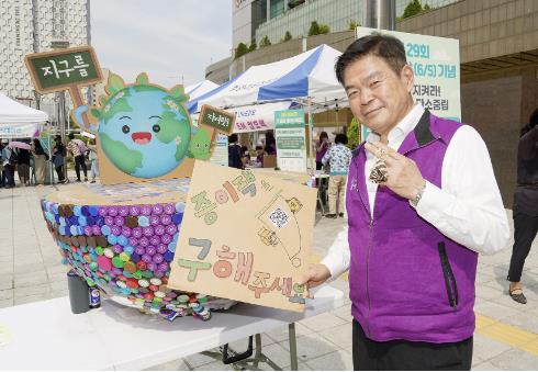 ▲ 지난 6월 5일 환경의 날 기념 캠페인 '지구를 지켜라! 재미있게 탄소중립!' 행사에 참석한 이필형 동대문구청장 |