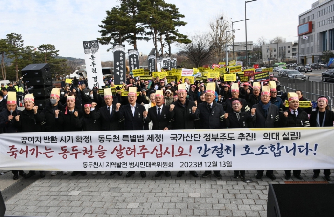 이에 참다못한 박형덕 시장이 나섰다. 박 시장은“70년 넘도록 국가안보를 이유로 희생한 동두천에 남은 건 지역경제 파탄과 존립 위기뿐이다. 특히 2024년은 정부가 동두천 지원을 약속한 지 10년이 되는 해이다. 하지만 지켜진 게 하나도 없고, 더 이상 정부의 약속을 기다릴 여유도 없다. 앞으로 우리 시의 요구가 관철될 때까지 동두천시 지역발전 범시민대책위원회(이하 범대위), 9만여 시민과 함께 강력한 대정부 투쟁에 나서겠다”라고 밝혔다.