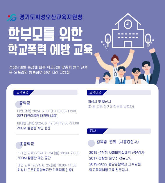 [뉴스서울] 화성오산교육지원청은 지난 6월 4일부터 관내 학부모를 대상으로 학교폭력 예방교육을 운영한다고 밝혔다.