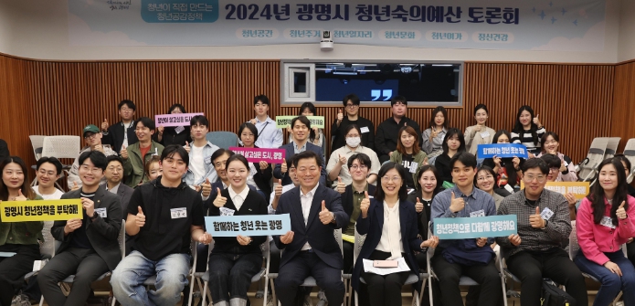 ▲ 광명시는 청년이 직접 참여하는 청년 공감정책을 통해 6년 연속 청년친화헌정대상을 수상했다. 사진은 박승원 광명시장이 지난 4월 광명시 청년동에서 열린 2024년 광명시 청년숙의예산 토론회에 참석한 모습. |