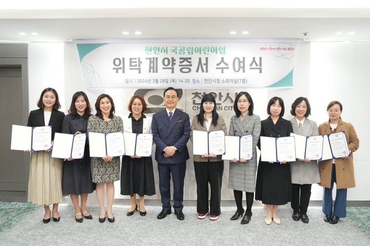 [뉴스서울] 천안시는 최근 국공립어린이집 위탁운영자 9명에게 위탁계약 증서를 전달했다고 1일 밝혔다.
