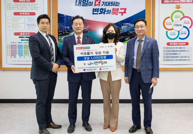 오태원 구청장은 “부활절의 기쁨을 어려운 이웃과 함께 나누고자 성금을 기탁해주신 덕천제일교회에 감사드린다”라며 “앞으로도 내일이 더 기대되는 변화의 북구를 만들기 위해 함께 해주시길 바란다”라고 말했다.