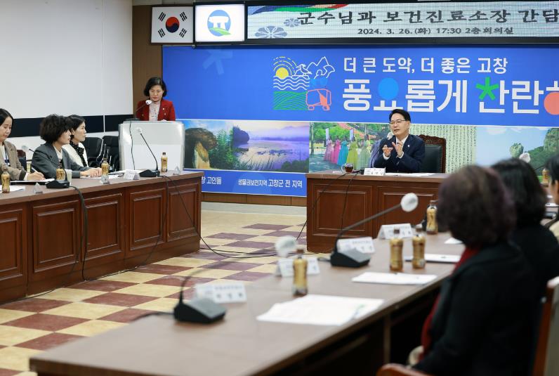 이날 간담회는 보건진료소장들의 헌신과 봉사에 노고를 격려하고, 미담사례 등을 공유하며 ‘더 큰 도약, 더 좋은 고창’을 향해 함께 하자는 취지로 마련됐다.