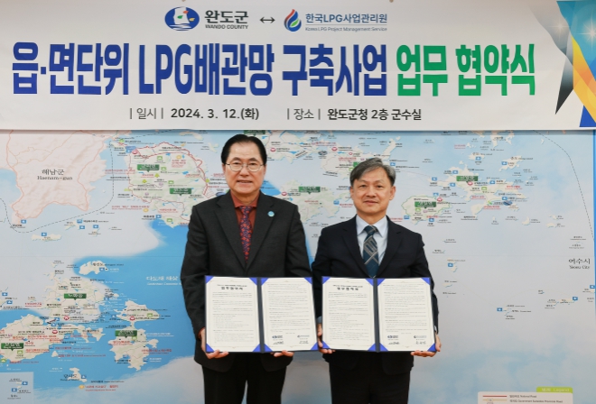 [뉴스서울] 완도군은 지난 12일 한국LPG사업관리원과 '읍·면 단위 LPG 배관망 구축 사업' 추진을 위해 업무 협약을 체결했다.
