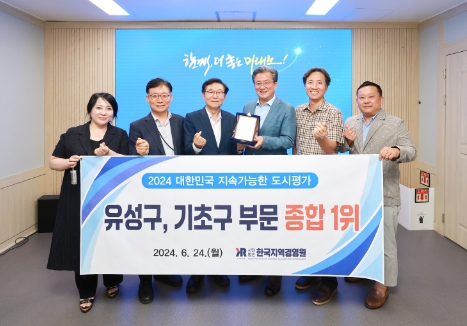 [뉴스서울] 대전 유성구는 지난 24일 지역의 경쟁력 강화를 위해 (사)한국지역경영원이 처음 실시한 2024 대한민국 지속가능한 도시평가에서 총점 564.4점으로 기초구 부문 종합 1위에 선정돼 상패를 수여받았다.