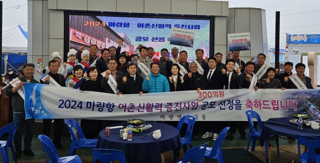 강진군 마량면 지역발전협의회가 지난 25일 마량놀토수산시장 앞 광장에서 2024년 어촌신활력증진사업 공모 선정 축하 행사를 가졌다.
