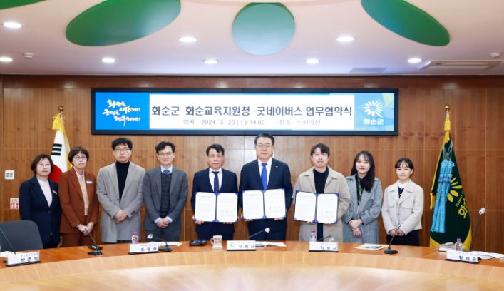 [뉴스서울] 화순군은 20일 화순군청 소회의실에서 전라남도화순교육지원청,·굿네이버스전남북부지부(강성규)와 위기 아동 지원을 위한 조기 개입 네트워크 구축 협약(MOU)을 체결했다.