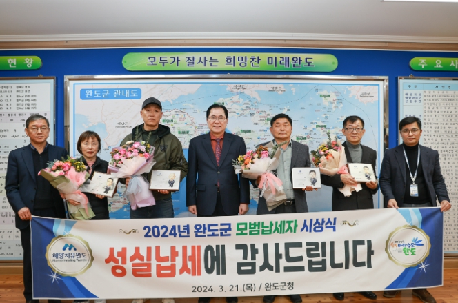 [뉴스서울] 완도군은 지방세를 성실하게 납부해 건전한 납세 문화 조성에 앞장선 모범 납세자 법인 1개 업체와 개인 3명을 선정하여, 3월 21일 신우철 군수가 직접 표창패와 모범 납세자 증서를 수여했다.