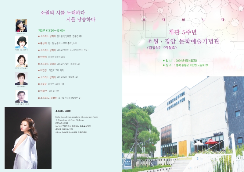 기념식 후에는 ‘소월의 시를 노래하다 시를 낭송하다’를 주제로 소프라노 공해미 초청공연 및 시 낭송 행사도 펼쳐졌다.