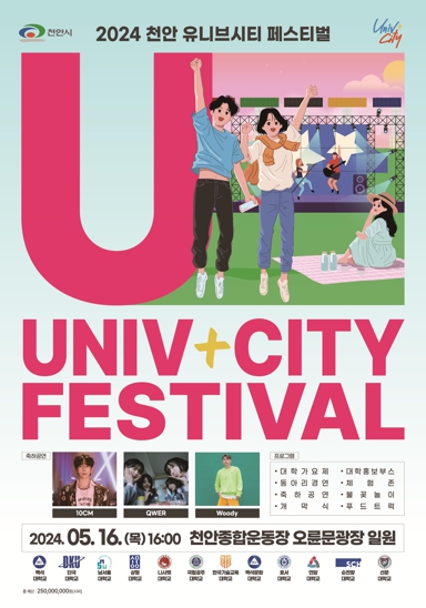 [뉴스서울] 천안시는 오는 16일 천안종합운동장 오륜문광장 일원에서 시민과 12개 대학 대학생이 함께하는 ‘2024 천안 유니브시티 페스티벌’을 개최한다.
