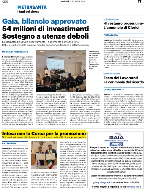 지난 30일(이탈리아 현지시간) 피에트라산타의 소식을 전하는 현지 언론사는 증평군과 피에트라산타의 협약 소식을 전했다.