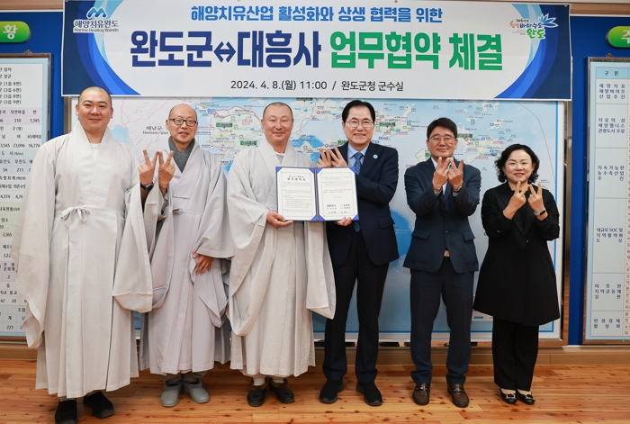 [뉴스서울] 완도군은 지난 4월 8일 해양치유산업 활성화를 위해 대한불교 조계종 제22교구 본사인 대흥사와 업무 협약을 체결했다.