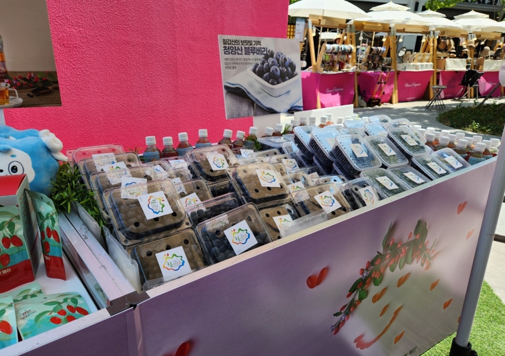 제철 농산물인 ▲블루베리와 지역대표 특산물(구기자)을 활용 가공한 ▲고지베리 콜라겐 젤리, ▲새빨간 구기자 음료의 전시·판매는 많은 방문객의 이목을 끌었다.