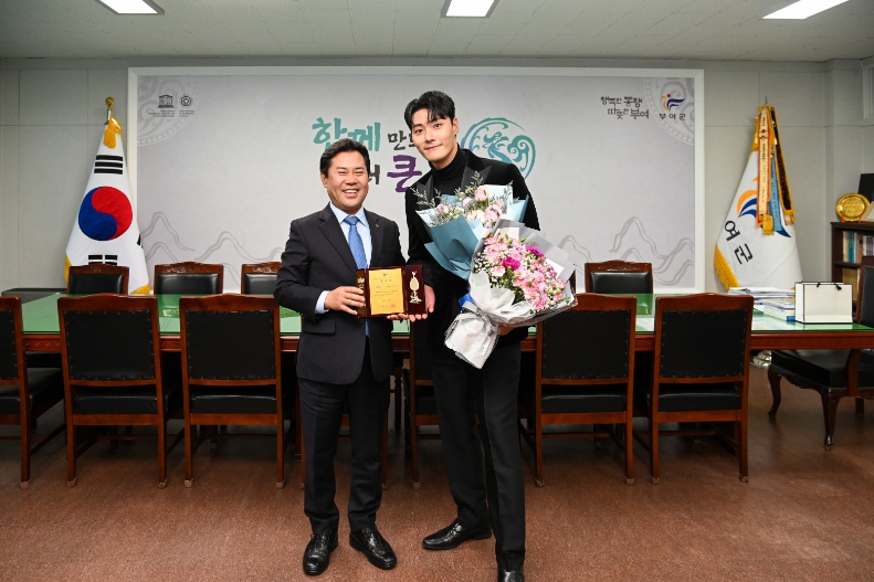 [뉴스서울] 박정현 부여군수는 지난 5일 군수 집무실에서 뮤지컬배우 임정모를 부여군 홍보대사로 위촉하고 위촉패를 전달했다.