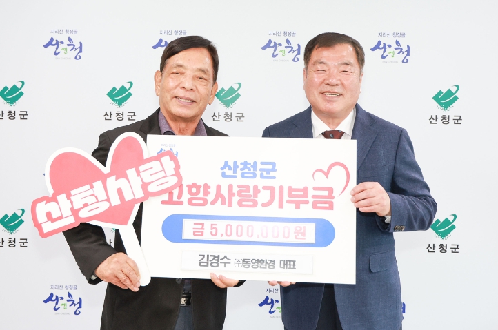 [뉴스서울] 산청군은 김경수 ㈜동영환경 대표가 고향사랑기부금 500만원(개인 연간 최고 기부액)을 전달했다고 27일 밝혔다.