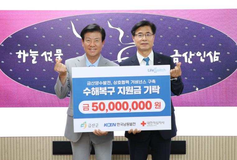 ▲ 금산군 한국남동발전, 수해복구 성금 5000만 원 기탁 |