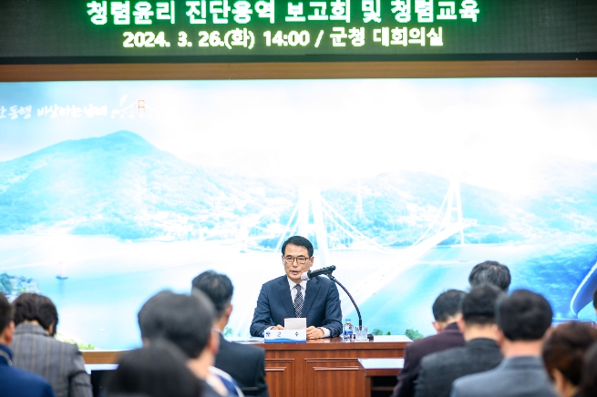 [뉴스서울] 남해군은 26일 군청 대회의실에서 청렴한 조직문화 조성을 위한 ‘청렴윤리 진단용역 보고회’와 더불어 ‘장충남 군수 주재 청렴교육’을 실시했다.