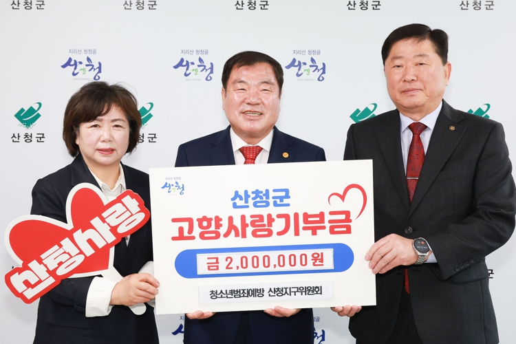 [뉴스서울] 산청군은 청소년범죄예방 산청군지구위원회가 고향사랑기부금 200만원을 전달했다고 15일 밝혔다.