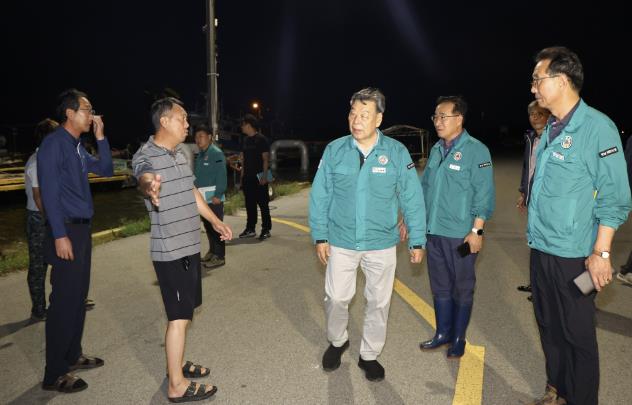 군에 따르면, 가 군수는 22일 오전 5시경부터 남면에 위치한 ‘해낮이 방조제’와 ‘드르니항’, 태안읍 ‘삭선리 방조제’를 차례로 찾아 상습 월류 위험지역 현장을 살펴보고 철저한 대비를 당부했다.