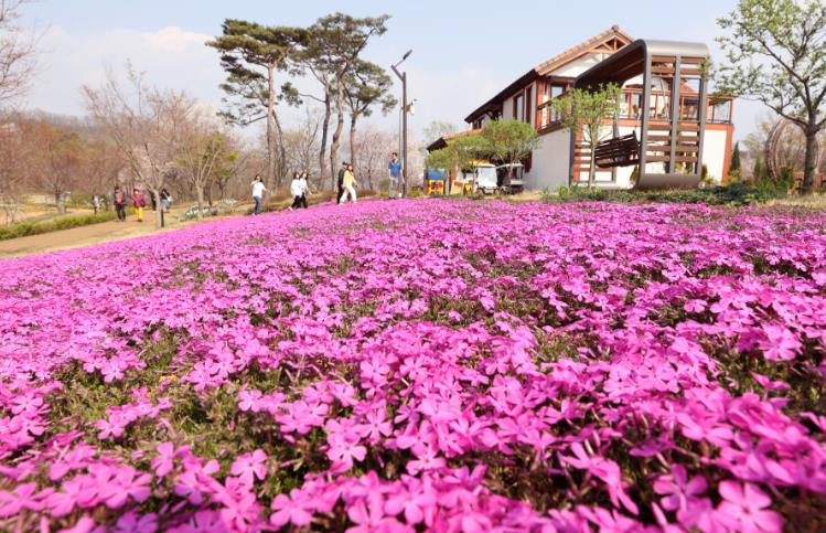 벚꽃과 튤립, 수선화가 만개했던 붕어섬 생태공원은 4월중순이 지나면서 꽃잔디와 철쭉의 진분홍이 장관을 이루어 방문 관광객들은 진분홍의 꽃속을 거닐며 더해가는 봄기운을 만끽 할 수 있다.