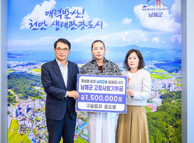 [뉴스서울] 남해군은 ‘구슬동자 윤도령’으로 활동하고 있는 무속인 윤정빈 씨가 고향사랑기부금 150만원을 기탁했다고 밝혔다.