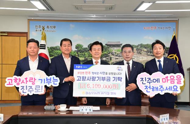 [뉴스서울] 진주시는 지난 18일 시청 5층 기업인의 방에서 거제장승포농협 임직원들로부터 2년 연속으로 고향사랑기부금 500만 원을 기탁받았다고 전했다.
