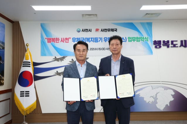 시는 지난 22일 사천시청 시장실에서 박동식 시장, 박주식 사천우체국장 등 관련 직원 10명이 참석한 가운데 사천우체국과 ‘복지 등기 우편서비스’ 업무 협약을 체결했다.