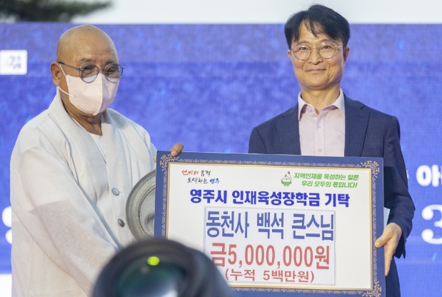 [뉴스서울] (재)영주시인재육성장학회는 동천사 백석스님이 인재육성장학금 500만 원을 기탁했다고 27일 밝혔다.