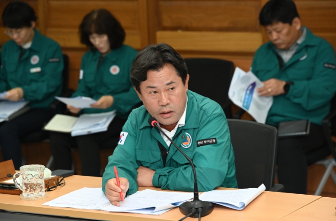 [뉴스서울] 박정현 부여군수가 15일 서동브리핑실에서 열린 ‘재난안전 대처상황보고회’에서 수해로 인한 피해 상황을 점검하고, 부서 간 협업을 통해 빠른 일상으로의 회복을 주문했다.