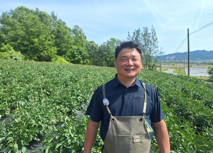 ▲ 정한규 대표가 자신의 작약 농장에서 포즈를 취하고 있다. |