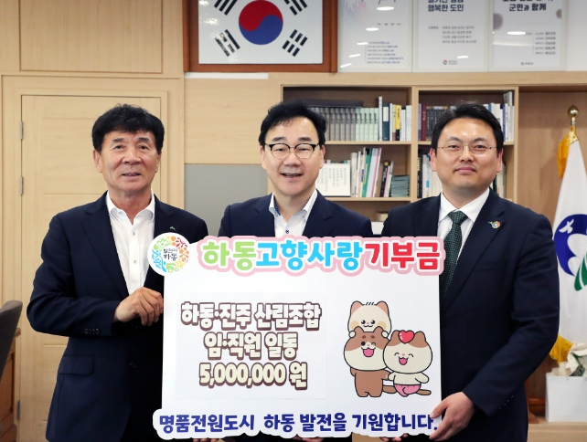 [뉴스서울] 하동군은 지난 22일 하동·진주 산림조합 임직원들이 서로의 발전을 기원하며 고향사랑기부금 5백만 원을 상호 전달했다고 밝혔다.