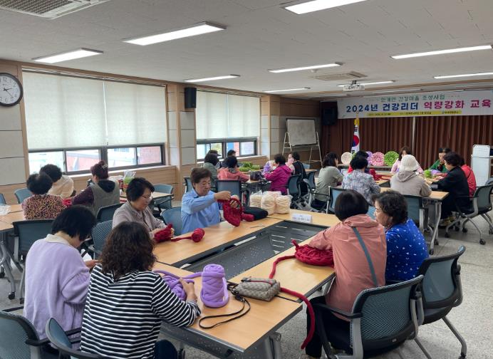 건강리더 역량강화와 재능기부 프로그램은 뇌 감각신경을 활성화시키고 인지기능 향상과 우울감 감소에 효과가 있는 소근육을 활용한 손뜨개 프로그램으로 진행하고 향후 자원봉사자와 건강리더가 직접 강사가 되어 마을별 경로당에서 운영할 예정이다.
